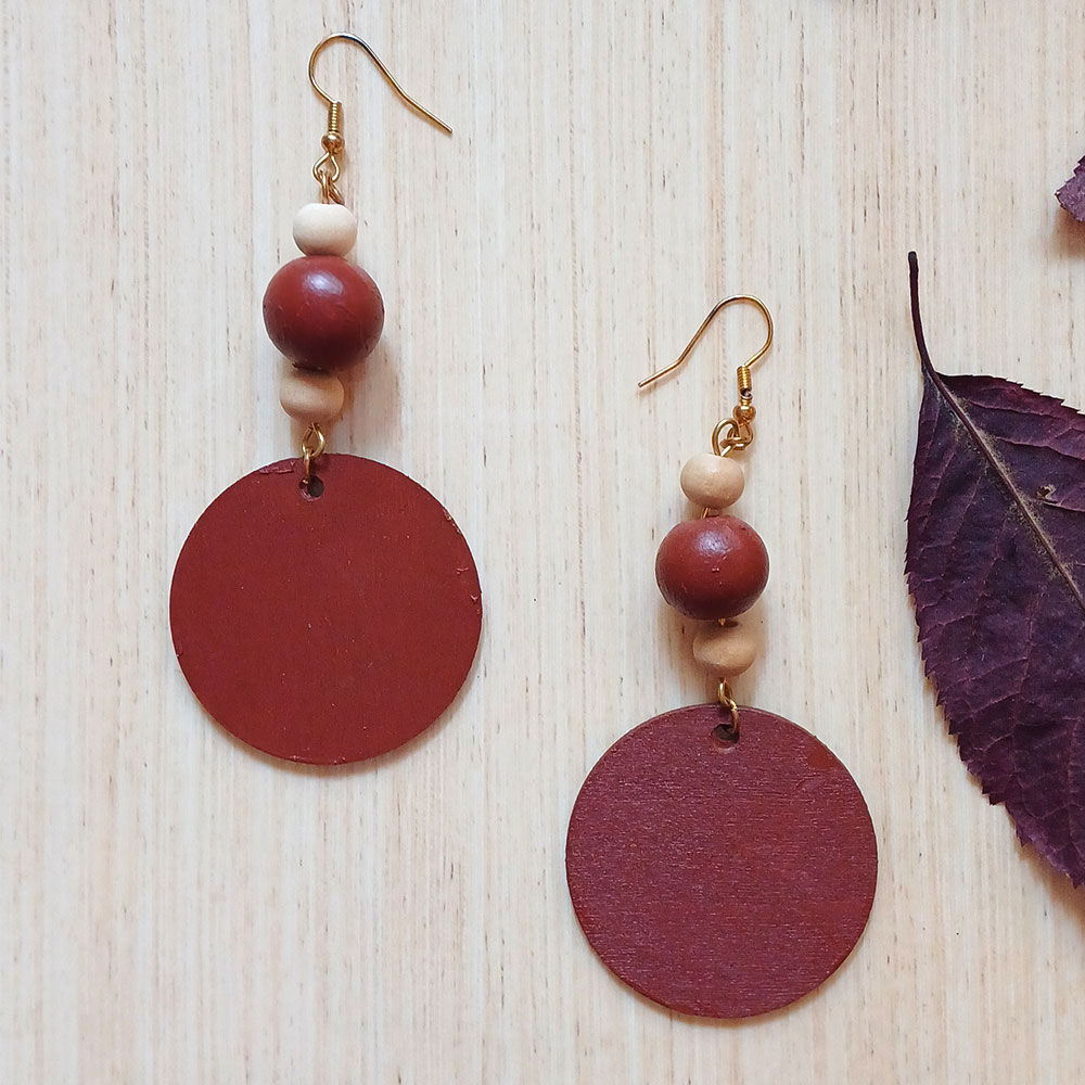 🍁Circle Autumn Spice – Handcrafted Brown/Terracotta Wooden Earrings with Beads