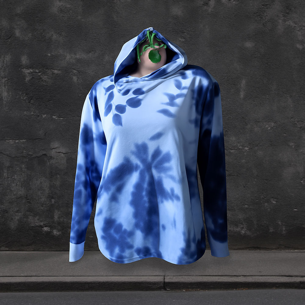 Cosmic Dream Hoodie captures the serene side of the cosmos — a vision of calm, rhythm, and meditative beauty expressed through fabric and color. The piece begins with a soft lavender-blue base, then transforms through a hand-dye process into deep indigo spiral formations that radiate outward like galaxies in motion. Each swirl, fade, and hue shift creates a sense of quiet infinity — as if you’re wearing a dream captured in motion.