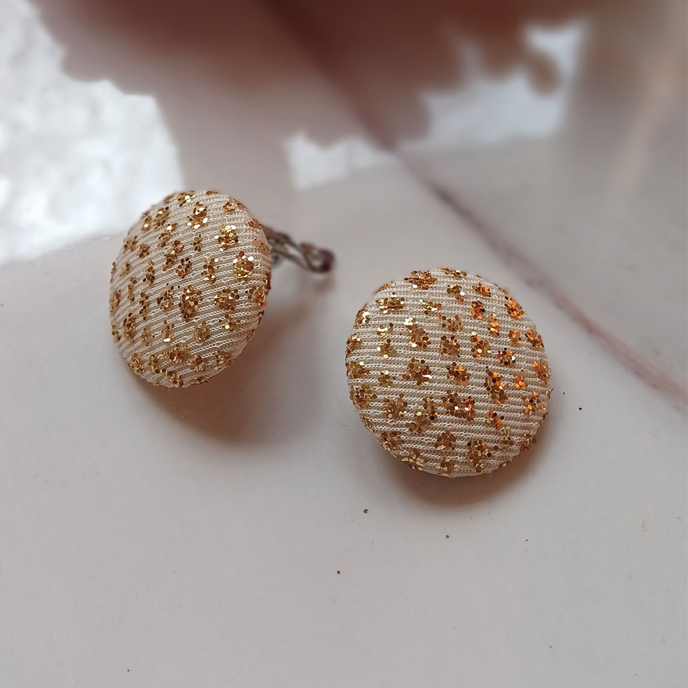 Every pair of Golden Polka earrings is meticulously handcrafted, ensuring smooth fabric coverage and perfectly placed gold accents.