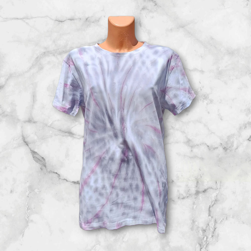 Grey Cloudy Whisper evokes the calm and mystery of a misty morning. Hand-dyed in soft layers of pale gray, creamy white, and gentle lilac-pink, this tee captures the delicate dance of clouds and fog. The flowing gradients create a serene, almost ethereal effect — soft, dreamy, and quietly captivating.