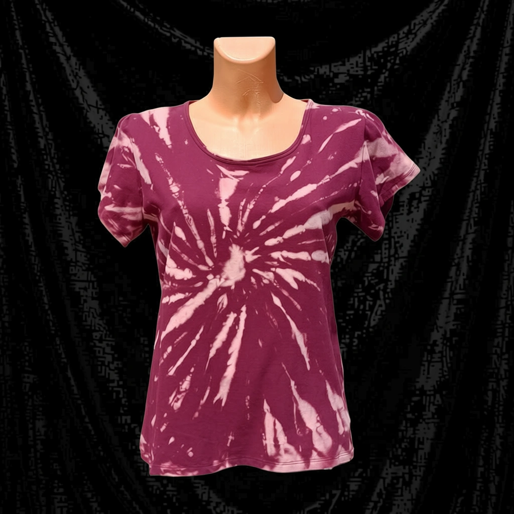 🍷✨ Merlot Sunburst – Hand-Bleached & Re-Dyed Wine-Toned Spiral Tee