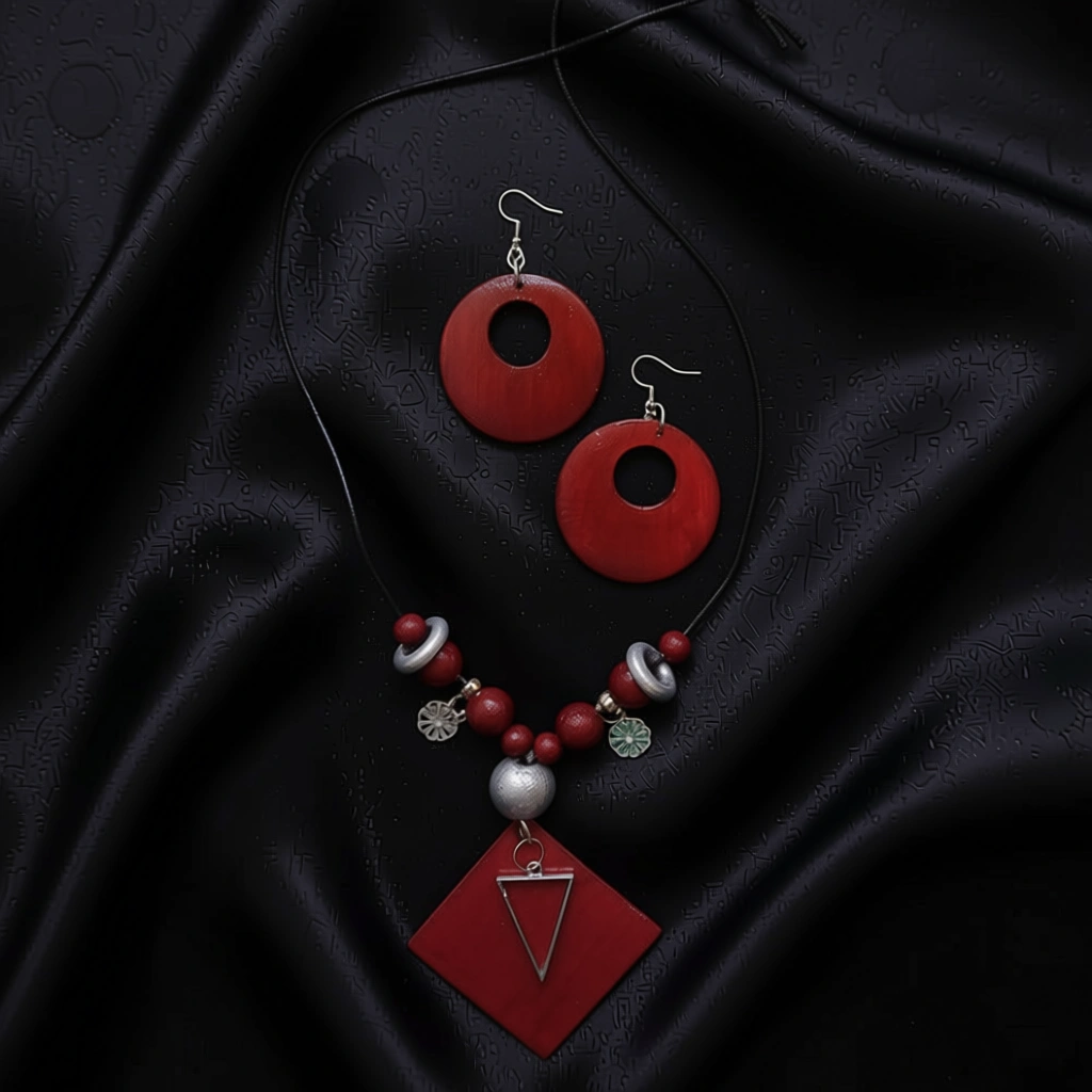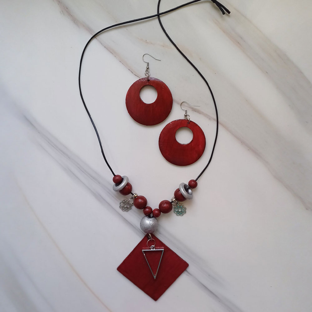 • Materials: Dark Wood, Metal Charms (Silver-Toned), Cord.